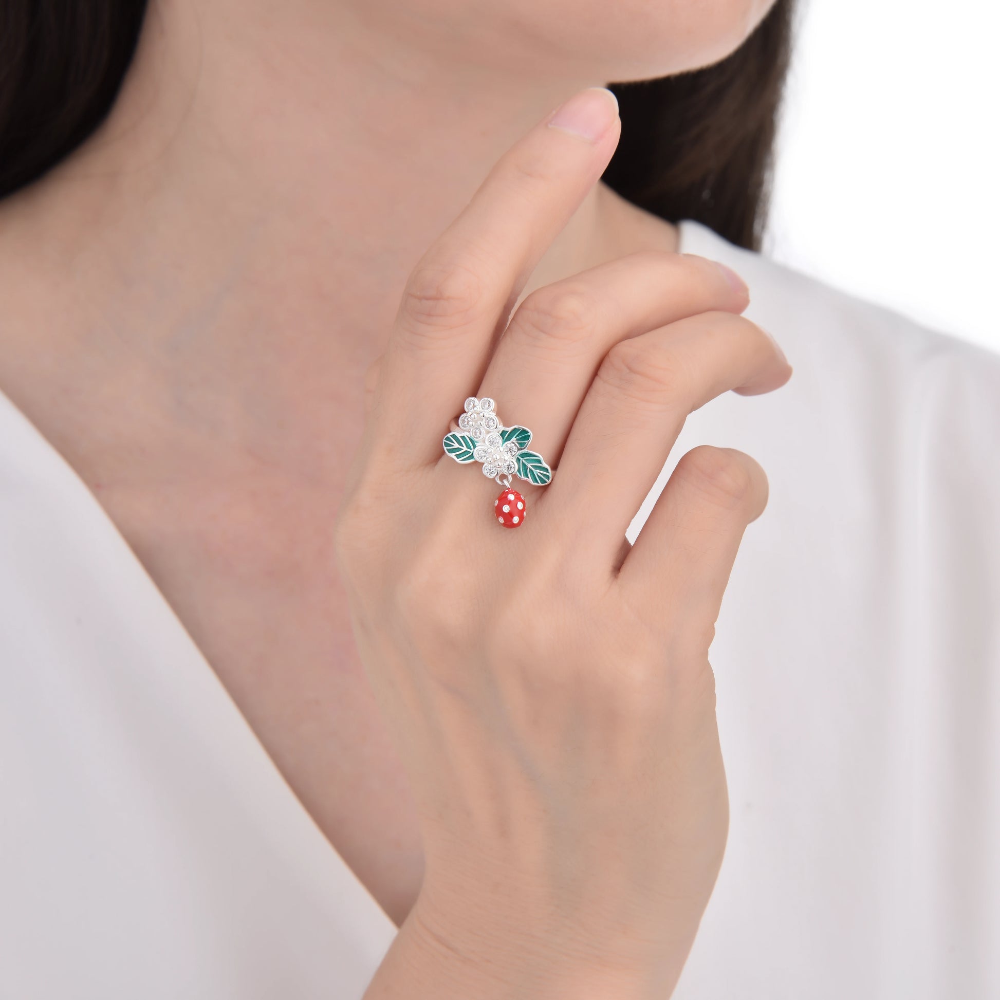 Una pieza moderna, original que combina hojas verde, cristales brillantes y un delicado detalle colgante en forma de fresa. Su diseño fresco y creativo aporta un toque juvenil sofisticado, ideal para quienes buscan una joya diferente, alegre con personalidad. Perfecto para darle color y estilo a cualquier look diario.